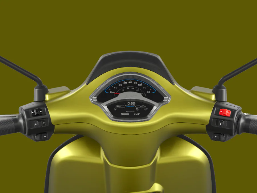 Vespa Sprint S 配备了先进的模拟-数字式仪表盘,它能与 Vespa MIA 系统无缝对接。该系统的配套应用程序提供车辆状态和行程信息,同时支持安全的免提通话和音乐播放功能,让您的骑行体验更加安全且愉悦。请注意,此功能为可选配置。