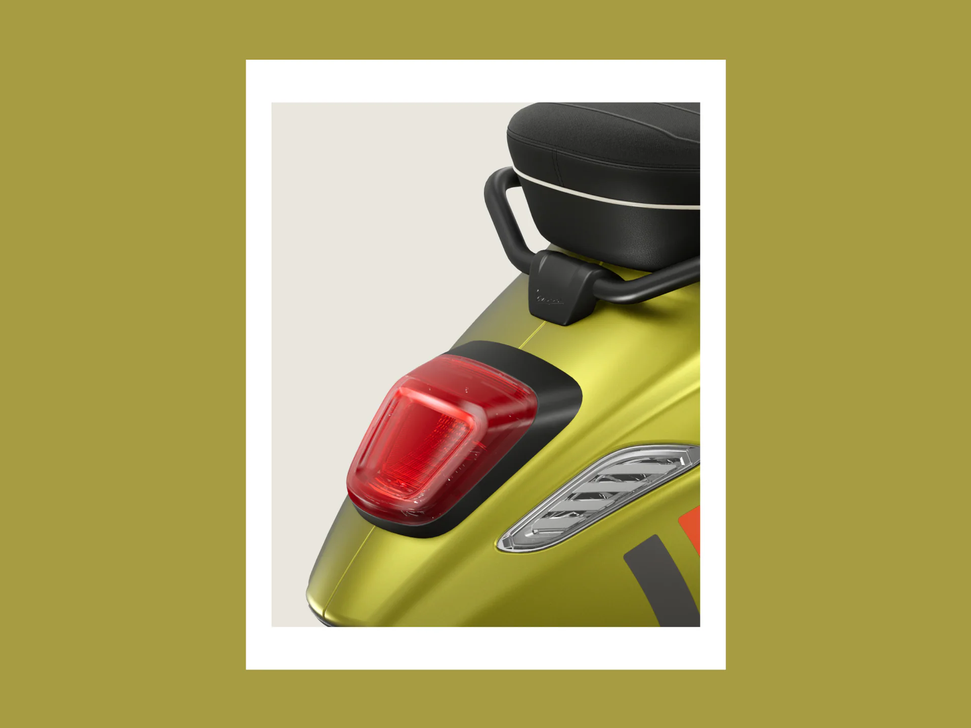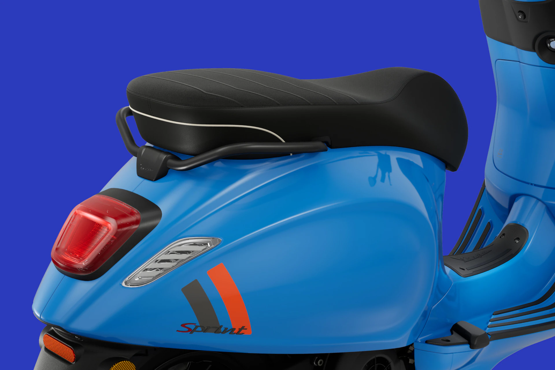Vespa Sprint S 采用了紧凑轻巧的钢制车架,集坚固与灵活于一身。其运动风格、流畅造型、黑色装饰、独特的矩形前灯,以及搭配优雅铝合金轮圈的12英寸大轮毂等特色,共同塑造了这款车型的独特魅力,使其成为众人眼中的焦点。