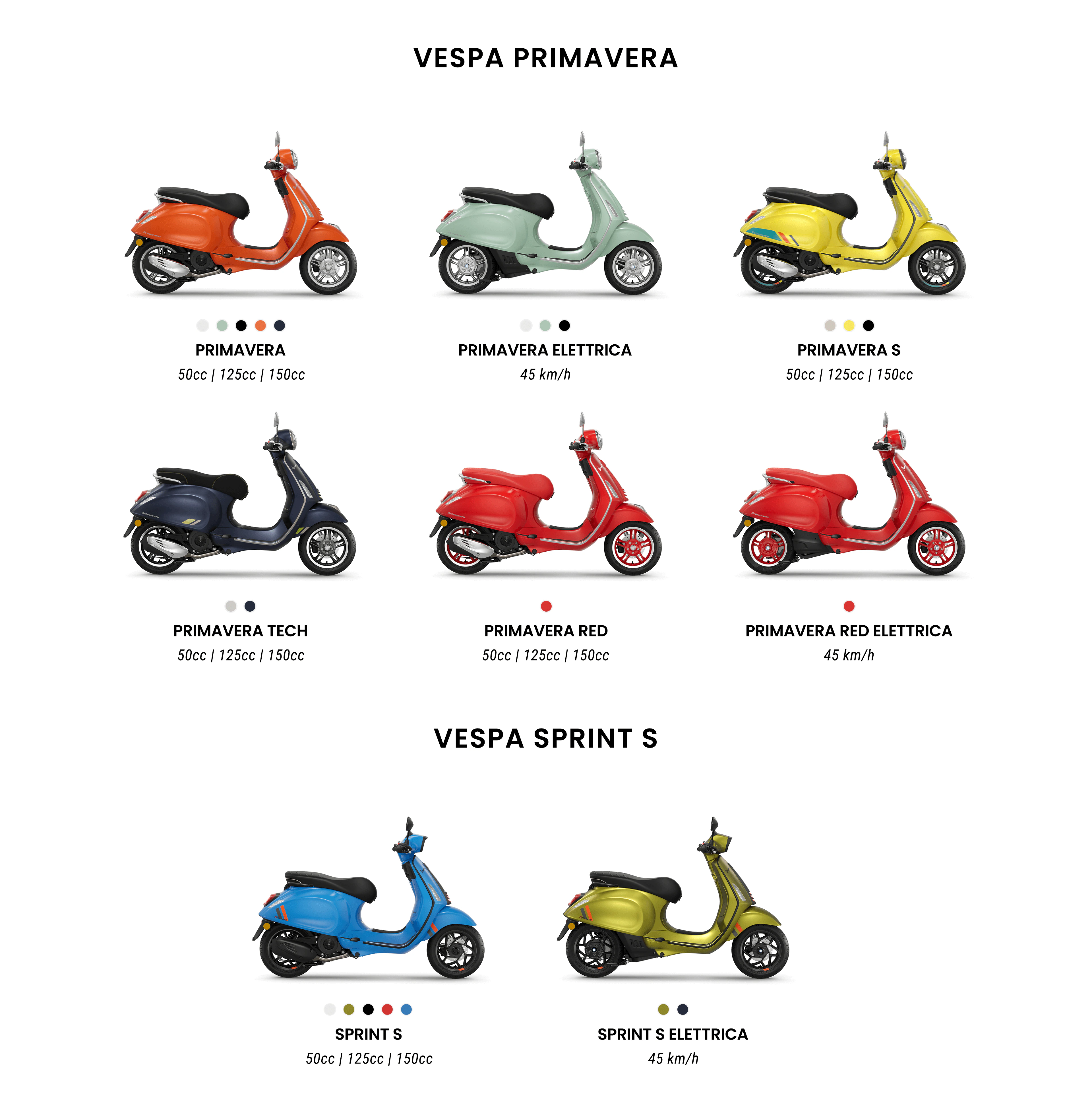 新款电动 Vespa Primavera 和 Vespa Sprint S 融合了进步理念、现代风格、独家设计和卓越性能。这些既安静又强力的车型,是那些寻求尖端科技与非凡体验人士的理想选择。
