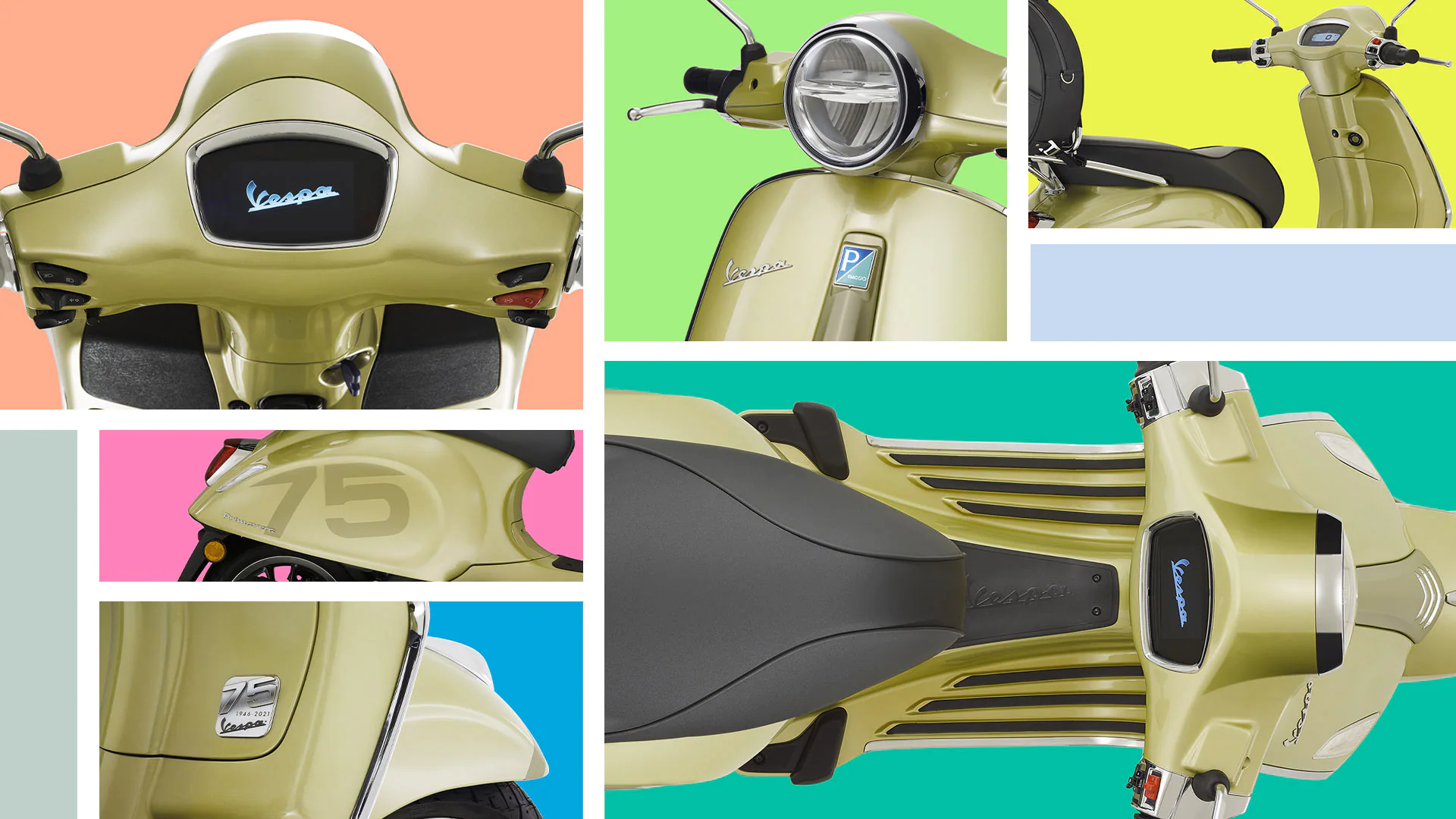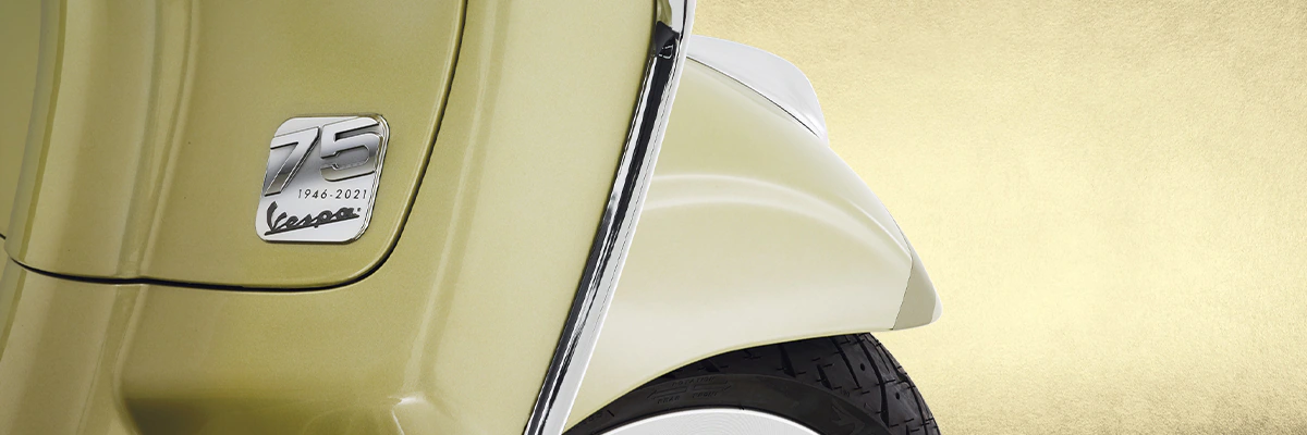 Vespa 75周年特别版绝不普通,而且外型更青春、更符合时代潮流。它骄傲地展现出一个具有象征意义的数字:75,设计上采用精细的雾面黄铜色,重新诠释40年代的色调,优雅的对比那独特的金属亮面硫磺色。这台纪念特别版还附上专属铭版,纪念Vespa这个重要的日子。