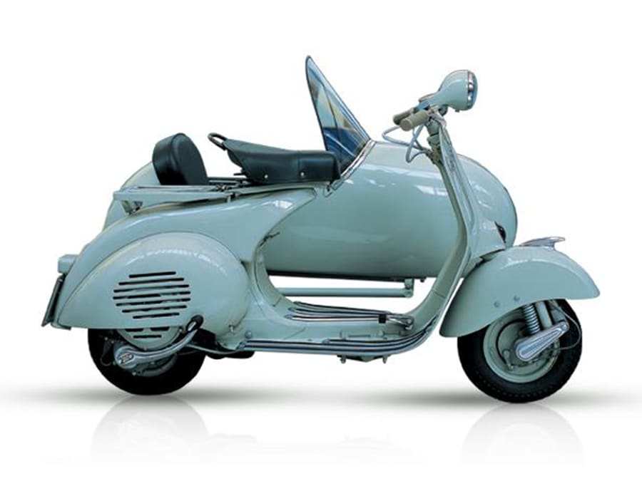 Vespa sidecar于1948年底和1949年初之间设计打造。带挎斗的Vespa让长途旅程更加稳定及舒服。挎斗的主要材料是薄钢板,手工组装完成之后,再通过一根管子接上Vespa车身。这款Vespa即使在雪地和陡坡上性能也相当出色,再加上车身后方小行李箱的额外储物空间,在长途骑行时也能感受更多的便捷与舒适。