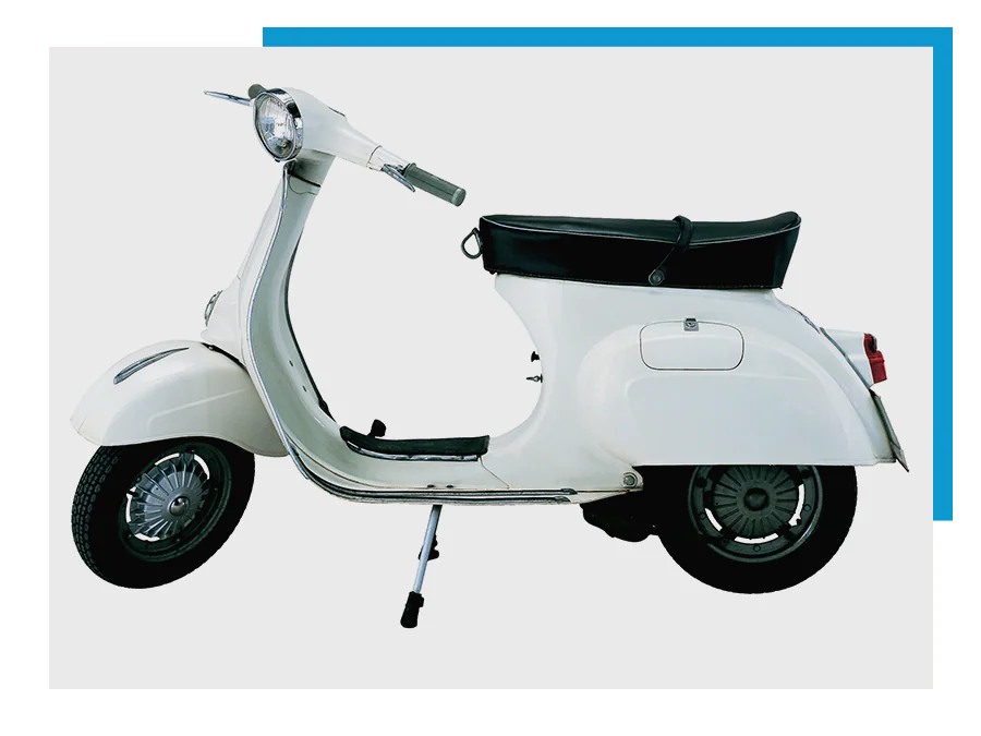 1977年于米兰摩托车展亮相的全新Vespa PX 125成为年轻市场的宠儿。方形线条以及加大的车架使得PX的更具辨识度,车把上的车速表经过重新设计,革新版的前轮悬挂系统配备了筒式避震器造就了这款高度创新的Vespa。
